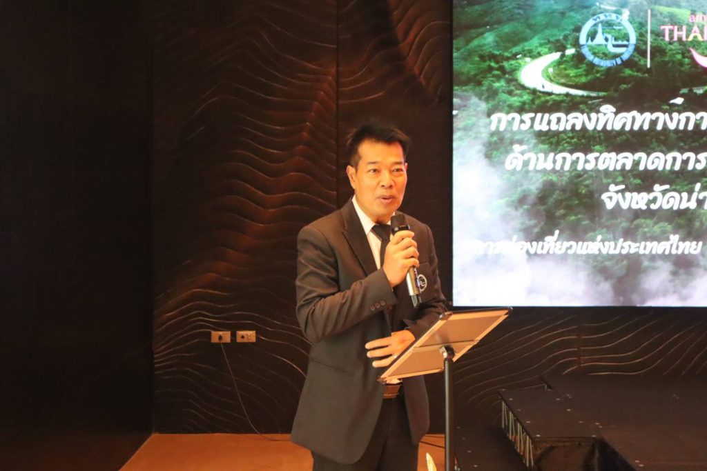 สภ.ภูเพียง จว.น่าน วันที่ 13 พ.ย. 2568 เวลา 09.00-12.00 น. โดยการอำนวยการของ พล.ต.ต.ดเรศ กัลยา ผบก.ภ.จว.น่าน มอบหมายให้ พ.ต.อ.ชาญยุทธ ไชยมะโน ผกก.สภ.ภูเพียงฯ เข้าร่วมงาน การแสดงทิศทางการดำเนินงานด้านการตลาดการท่องเที่ยว ของ ททท.สำนักงานน่าน ประจำปีงบประมาณ 2569 โดยมี นายชัยนรงค์ วงศ์ใหญ่ ผู้ว่าราชการจังหวัดน่าน เป็นประธานเปิดงาน พร้อมด้วย นายอนันต์ สีแดง ผอ.ททท.สำนักงานน่าน ร่วมสัมมนาในงาน ณ ห้องประชุมโรงแรม สฐา รีสอร์ท ต.ท่าน้าว อ.ภูเพียง จ.น่าน จึงเรียนมาเพื่อโปรดทราบ