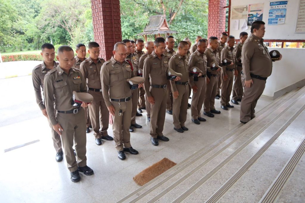 สภ.ภูเพียง จว.น่าน เรียน ผู้บังคับบัญชา วันที่ 19 พ.ย.2568 เวลา 08.00น. พ.ต.อ.ชาญยุทธ ไชยมะโน ผกก.สภ.ภูเพียงพร้อมด้วยข้าราชการตำรวจ สภ.ภูเพียง ร่วมพิธีน้อมสำนึกในพระมหากรุณาธิคุณ สมเด็จพระนางเจ้าสิริกิติ์ พระบรมราชินีนาถ พระบรมราชชนนีพันปีหลวง กล่าวอุดมคติตำรวจ กล่าวคำปฏิญาณตน และได้กำชับการปฏิบัติตนและความประพฤติของข้าราชการตำรวจ ตามประมวลจริยธรรมข้าราชการตำรวจ พ.ศ.2564 ระเบียบว่าด้วยการปฏิบัติตนของข้าราชการตำรวจเมื่อแต่งเครื่องแบบ พ.ศ.2566 โดยให้ผู้บังคับบัญชาทุกระดับชั้น ตรวจสอบ เข้มงวด กวดขันข้าราชการตำรวจในสังกัด ให้ถือปฏิบัติตามระเบียบ ตร. ณ ลานหน้าอาคารที่ทำการ หน่วย สภ.ภูเพียง จว.น่าน